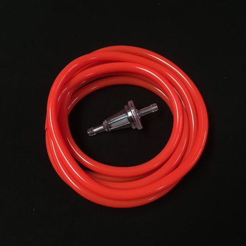 Fuel line kit includes 8’ of 1/4” fuel line with a straight fuel filter. Fuel line is available in your choice of Blue, Clear, Orange, Red, and Yellow.